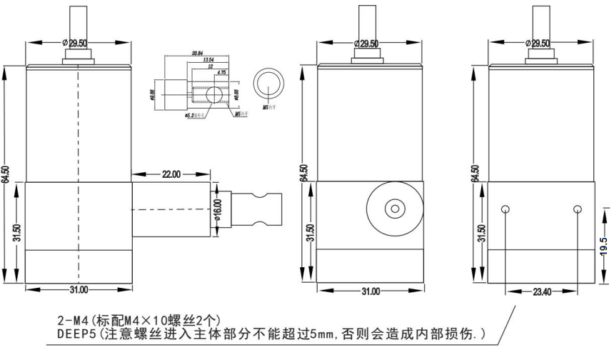 1、利用安裝支架或底部4個固定螺絲孔,依現(xiàn)場及機器安裝空間設(shè)施需要,選擇正確的方位直接安裝。